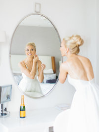 Rachel photographs Bride slipping into her dress and the girls getting ready.
